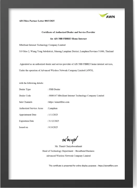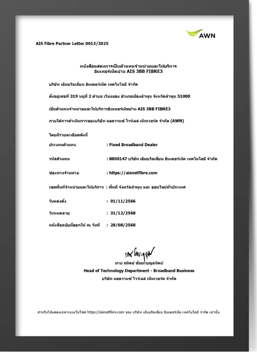 ใน 24 ชม. เน็ตบ้าน AIS สะดุดไม่ต้องรอนาน ทีมช่างพร้อมเข้าดูแลอย่างรวดเร็ว